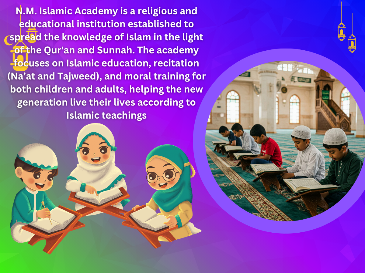 N M Islamic Academy is an Islamic institution that provides religious education and moral training in the light of the Qur’an and Sunnah